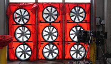 O ventilador se encarregará de pressurizar e despressurizar o ambiente, injetar e extrair o ar e, por meio de manômetros e software de PC, as fugas serão determinadas e convertidas em uma “área de perda equivalente”.